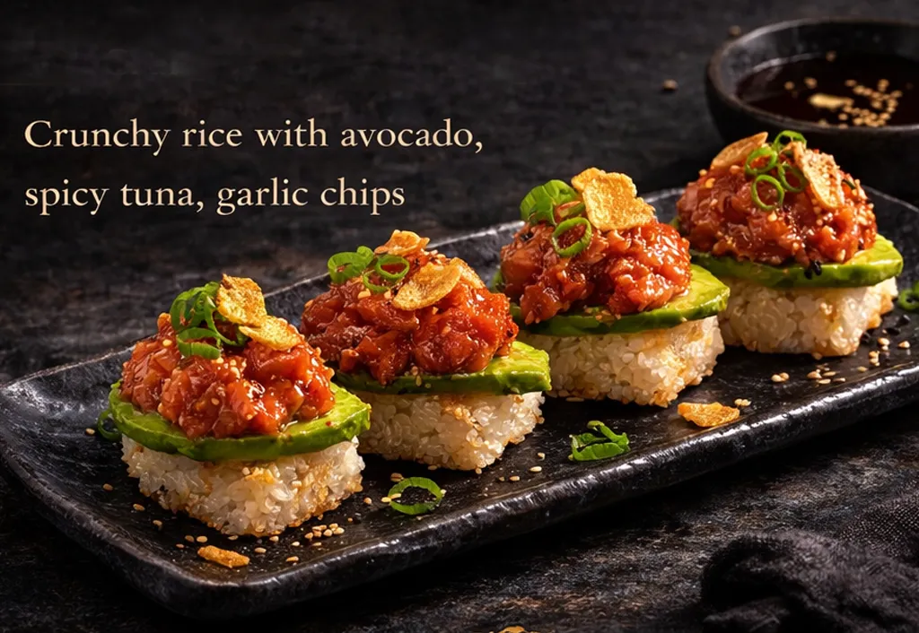 "We miso scallops to start. It is delicious with those creamy sauce on it. The next is the beginning hamachi. Then we got their famous spicy tuna crispy rice. I recommend this dish. We also got torch salmon donburi. This is also a good flavor due to torched flame. The last dish is the A5 wayu. This is my favorite."