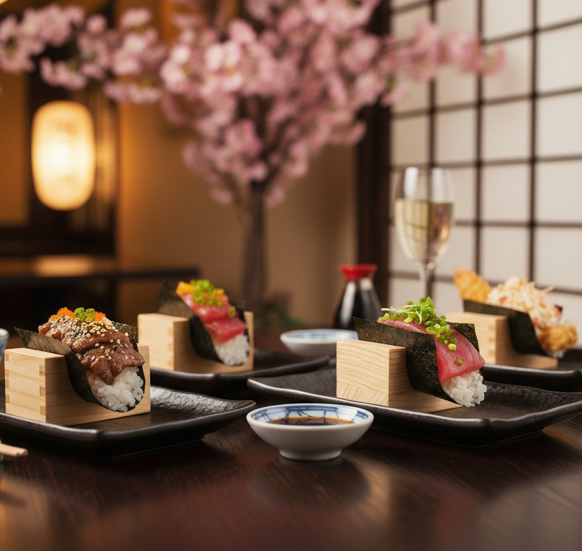 Hiraki (開き) means to open — to unfold flavors, to open conversation, to invite experience. Hiraki brings together three Japanese dining philosophies into one cohesive journey: